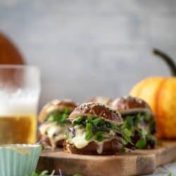 Pumpkin Beer Brisket Melts on Everything Pretzel Rolls.