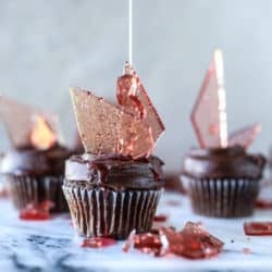 Devil’s Food Cupcakes with Pomegranate Sugar Shards.
