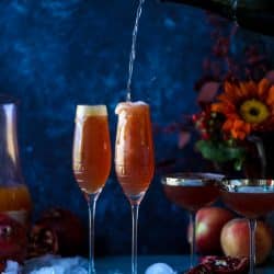 Pomegranate Cider Mimosas with a Salted Caramel Rim.
