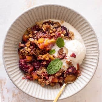 We adore this blackberry peach crisp! It’s juicy and syrupy and warm, topped with a crunchy oatmeal cookie crumble and vanilla ice cream. So...